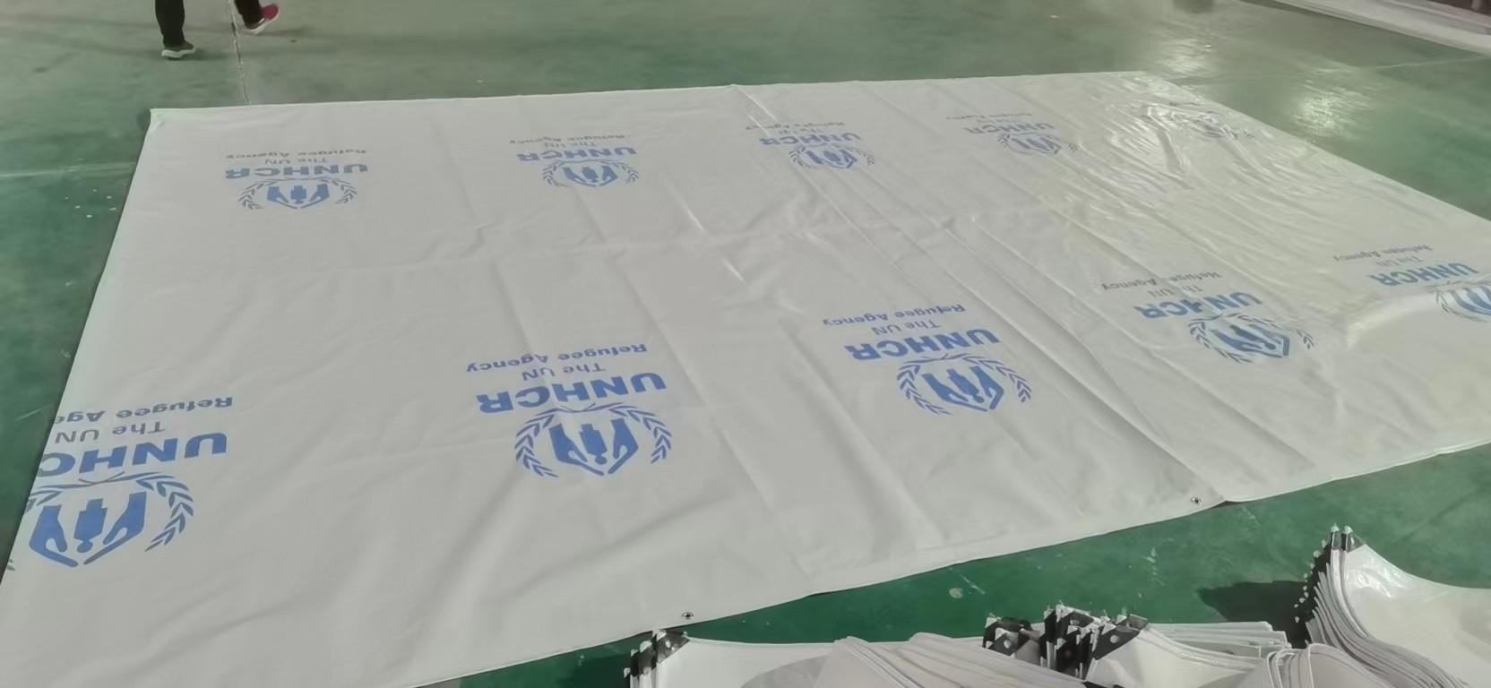 يمكن استخدام المنتج أيضًا في مواقع البناء. يمكن استخدام قماش البروتوكول البري لتغطية المواد والمعدات لحمايتها من المطر والعناصر الجوية الأخرى.يمكن أيضا أن تستخدم كحاجز لحماية العمال من الغبار والجسيمات الضارة الأخرى.